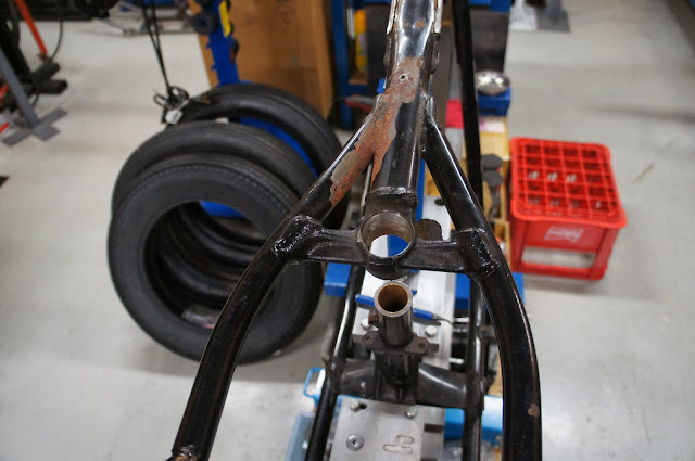 メインチューブからリアサスペンション取り付けの鋳物部分まで、綺麗に一直線に加工してみました。これで、サドルシートを取り付ける際もバランス良くマウント出来るでしょう。