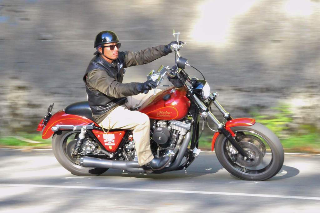 着たままヘルメット被れないカチカチ革ジャン野郎。自分も見習いたい。